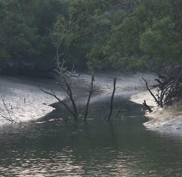 সুন্দরবনের ম্যানগ্রোভ বন, বিশ্বের বৃহত্তম বনগুলির মধ্যে একটি (১৪০,০০০ হেক্টর), বঙ্গোপসাগরের তীরে গঙ্গা, ব্রহ্মপুত্র এবং মেঘনা নদীর ব-দ্বীপে অবস্থিত। "ম্যানগ্রোভ বনটি বাংলাদেশে ৬০% এবং পশ্চিমবঙ্গে ৪০% অংশ জুড়ে বিস্তৃত।" - তথ্যসূত্র বিশ্বব্যাংক https://blogs.worldbank.org/en/endpovertyinsouthasia/sundarban-unique-wetland-preserve এই স্থানটি জোয়ারের জলপথ, কাদামাটি এবং লবণাক্ত সহনশীল বনটি ছোট ছোট দ্বীপে ঘিরে আছে এবং এই অঞ্চলটি তার বিস্তৃত প্রাণীজগতের জন্য পরিচিত, যার মধ্যে ২৬০টি প্রজাতি পাখি, মোহনার কুমির এবং পাইথনের মতো অন্যান্য বিপন্ন প্রজাতির প্রাণী এবং রয়েল বেঙ্গল টাইগার জন্য পরিচিত।